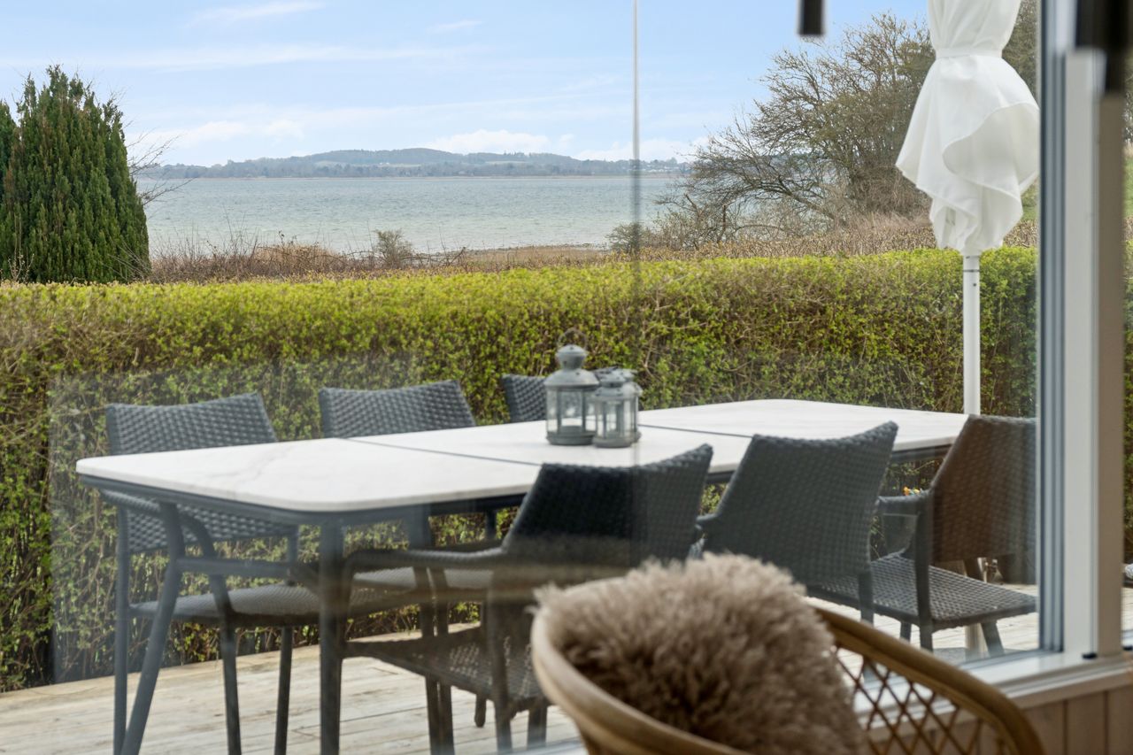Huset er højt beliggende i anden række fra Fjorden ved Egenæs med et formidabelt udsyn til Fjorden fra den skønne træterrasse. Med få skridt kan du være ved Fjordens stille vand og tage dig en morgen dukkert eller blot sidde på terrassen og se solen står op i horisonten.