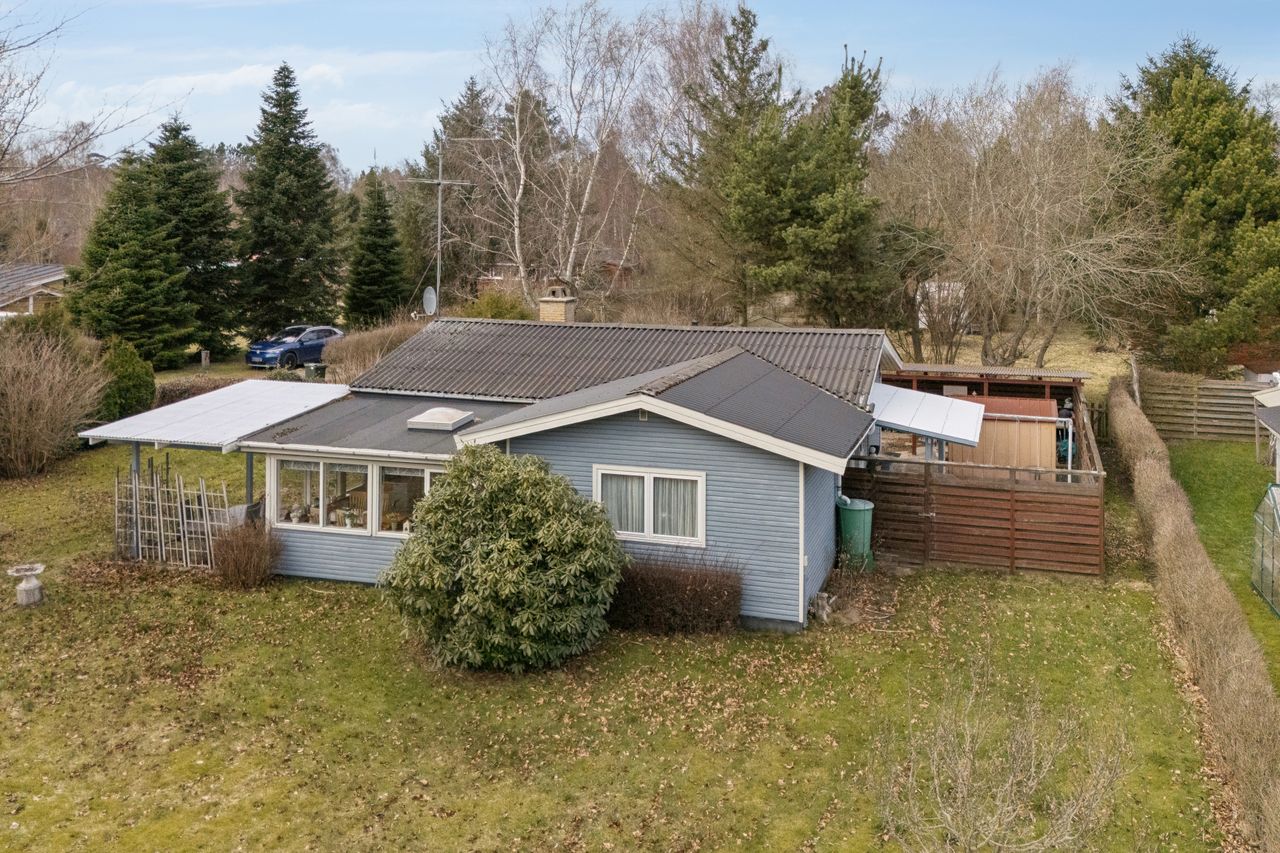 Huset er super hyggeligt og emmer af atmosefære, huset er placeret bagerst på grunden så det giver en stor forhave med plads til leg. På grunden er der et lille udhus der er indrettet til gæstehus med plads til 2 senge. Desuden carport og udhus.